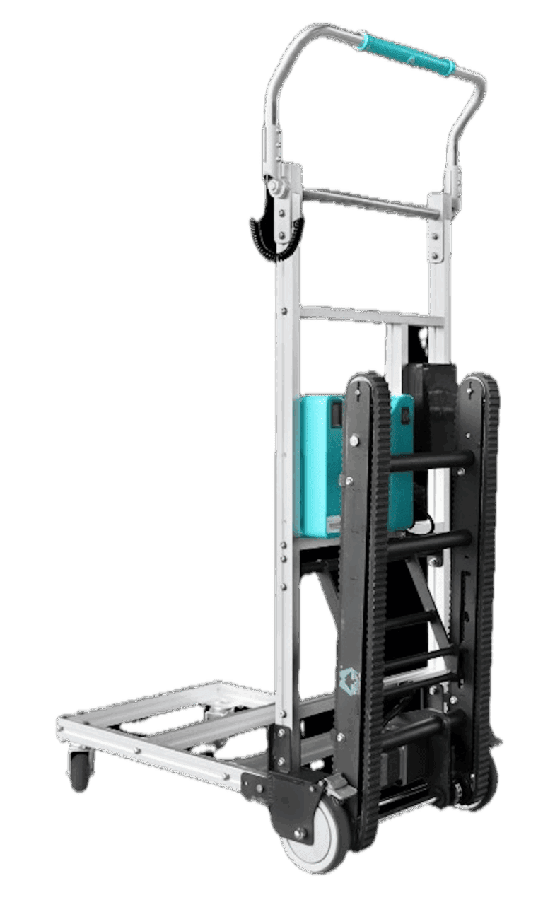 The TEDLIFT-T150L is a compact, battery-powered stair climber with a caterpillar track design, purpose-built for the safe and efficient transport of white goods and numerous other heavy items.
